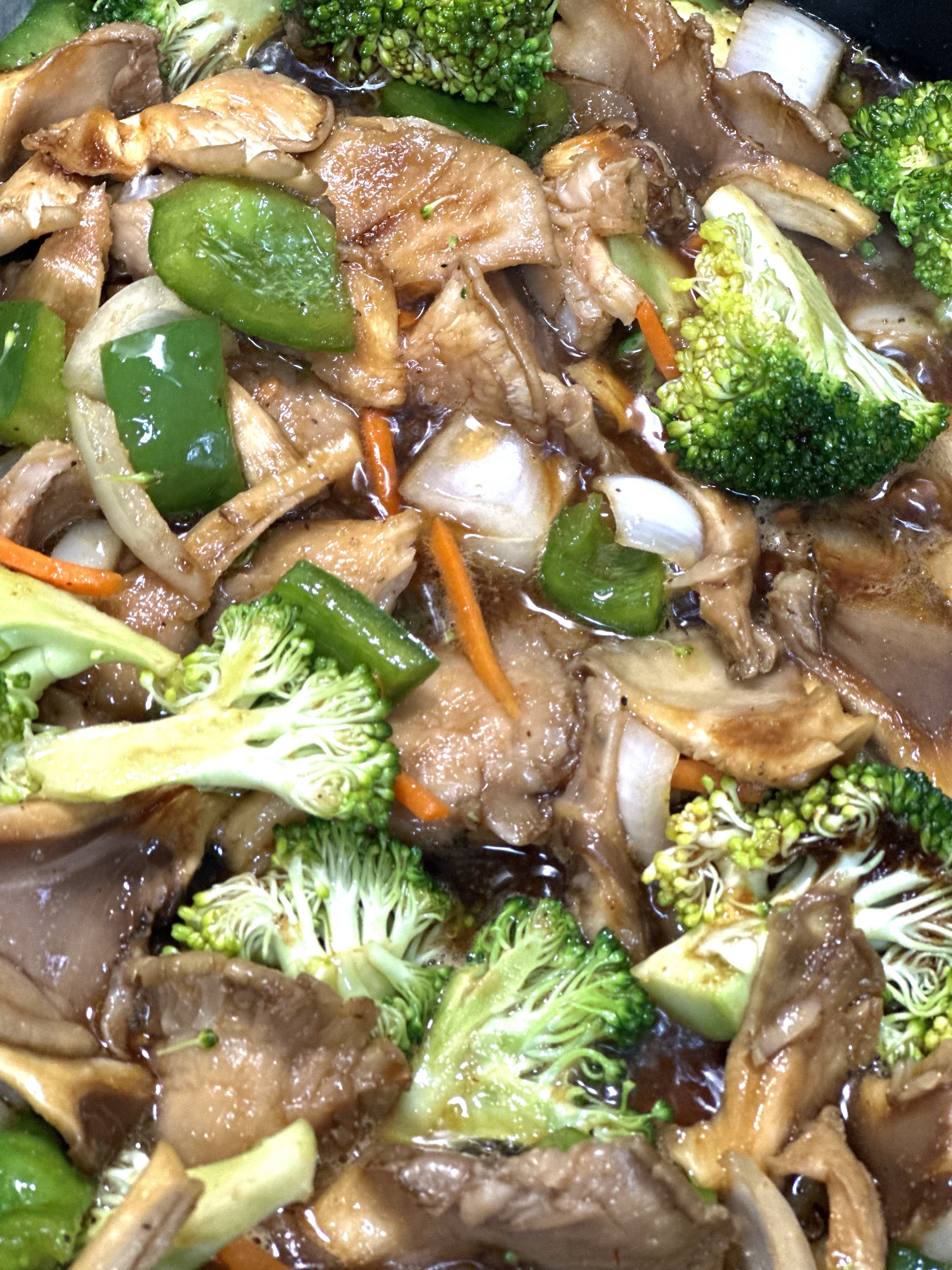 I posted a video recently on Instagram of my stir fry, and I had a lot of questions. I’m not a chef, but I experiment in the kitchen occasionally. Shifting to a plant-based diet can be a struggle sometimes, but I’m learning to incorporate quick new dishes. Whether you are a vegan, a mushroom lover, or simply looking for a delicious and quick weeknight meal, this teriyaki stir-fried oyster mushrooms and veggies recipe will surely tickle your taste buds.